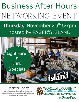 Chamber Partners come build relationships, meet new members, and enjoy lite fare and drink specials at Fager's Island from 5-7pm on Thursday, November 20th.